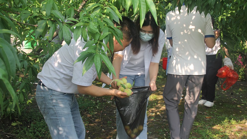 活動(dòng)當(dāng)天,天氣晴朗。參與采摘活動(dòng)的20余名員工來(lái)到果園,邊品嘗、邊挑選,園內(nèi)處處伴隨著歡聲笑語(yǔ),洋溢著輕松與和諧的氛圍,平日里工作的疲勞都融化在這陽(yáng)光明媚的夏日里,在汗水與收獲的滿足中,大家充分體驗(yàn)了一次采摘的樂(lè)趣。