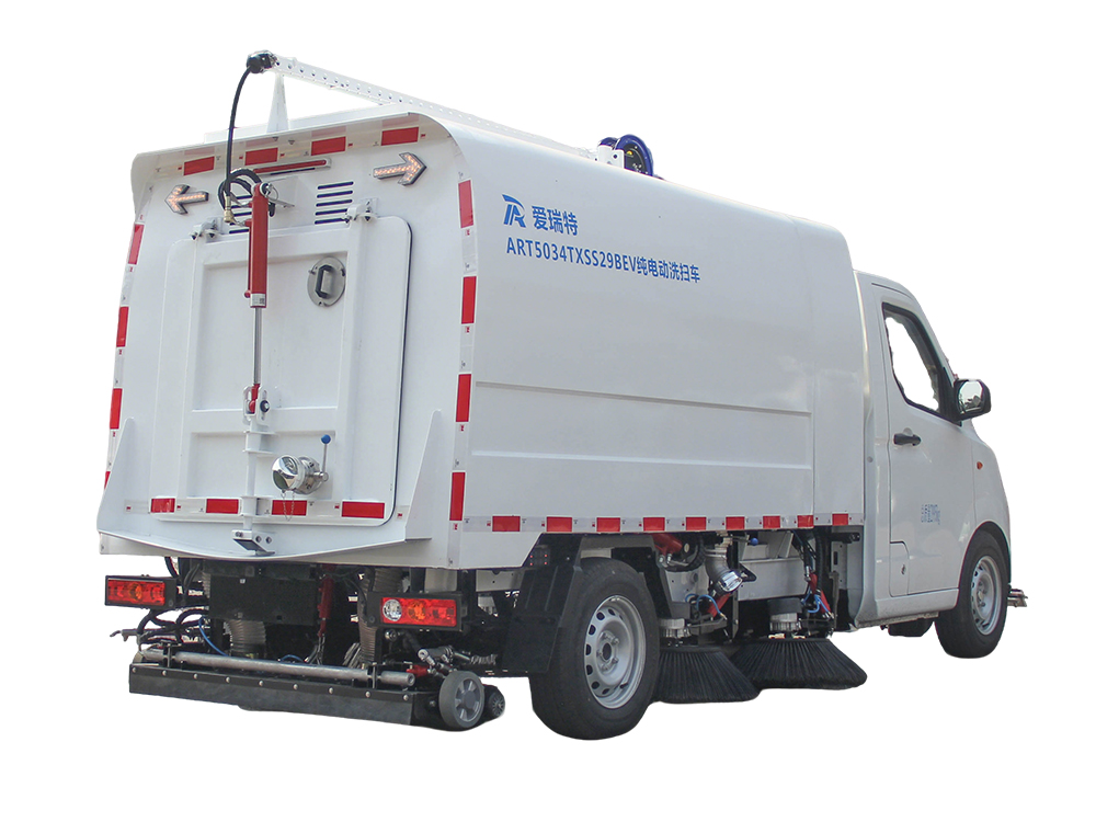 ART5034TXSS29BEV純電動洗掃車主要用于主干道、非機動車道、背街小巷等路面的普掃作業,集清掃、高壓沖洗等功能為一體,可快速清掃落葉、石子、沙塵、白色垃圾等,垃圾,自卸傾倒。