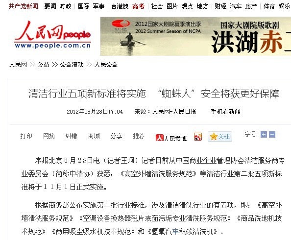 根據商務部2012年47號文件,公布生效實施第二批行業標準,愛瑞特主持起草的“商用洗地機技術規范”(SB/T10739-2012)于2012年11月1日生效,并在全國范圍內正式實施,此標準由中華人民共和國商務部歸口,中國標準出版社出版發行。標準實施后,將有序規范洗地機行業市場,對行業健康發展做出有力推動。