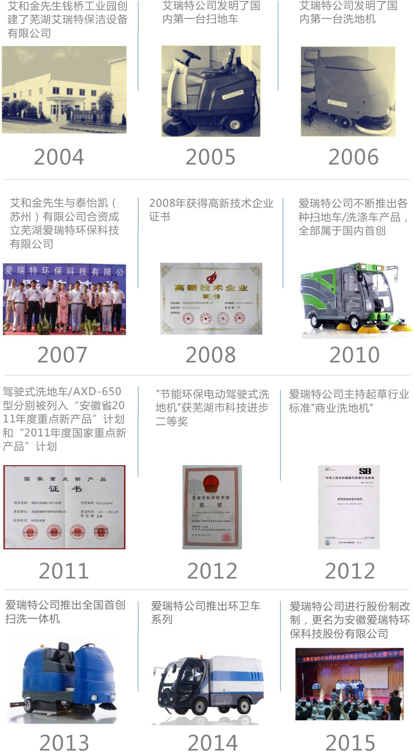 八年來,在蕪湖市和繁昌縣政府的支持下,愛瑞特憑借自身的技術優勢和綜合實力,利用品牌優勢積極發展,以“營造優美環境,開拓清新世界”為使命,變中國制造為中國智造。如今,愛瑞特已經成為行業領頭高新技術企業。今天讓我們追隨者愛瑞特發展腳步,回首八年奮斗路,見證發展史上的一個又一個奇跡。